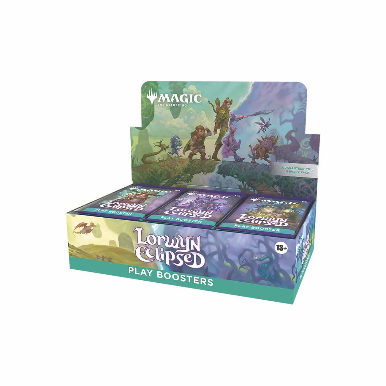 Дисплей содержит 30 игровых бустеров (play booster packs) издания Lorwyn Eclipsed на английском языке. Каждый игровой бустер включает 14 случайных карт Magic: the Gathering (MTG / МТГ) в том числе: 6-9 обычных (common) карт, 3-5 необычных (uncommon) карт, 1 базовую землю (basic land) с вероятностью 20% фойловую, 1-4 редких и/или мифических карт, минимум 1 блестящую (фойловую) карту. Есть также вероятность найти в бустере карту из специального издания репринтов Special Guests.