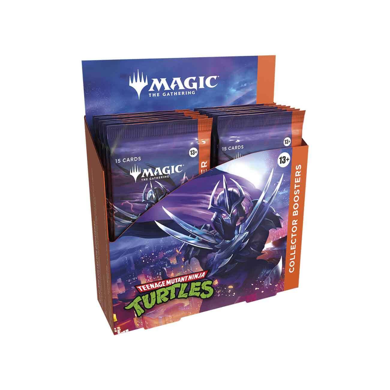 Дисплей содержит 12 коллекционных бустеров (collector booster pack) издания Teenage Mutant Ninja Turtles на английском языке. Каждый бустер содержит 15 особенных случайных карт Magic: the Gathering (MTG / МТГ) в том числе: 5 редких и/или мифических карт, 9-12 блестящих (фойловых) карт, 5-6 обычных (common) карт, 3-4 необычных (uncommon) карты, 1 базовую землю (basic land), 0-3 surge foil карты, также есть вероятность найти карты из специального издания Teenage Mutant Hero Turtles Source Material (PZA) с номерами 1-20 и borderless signature Kevin Eastman headliner карты.