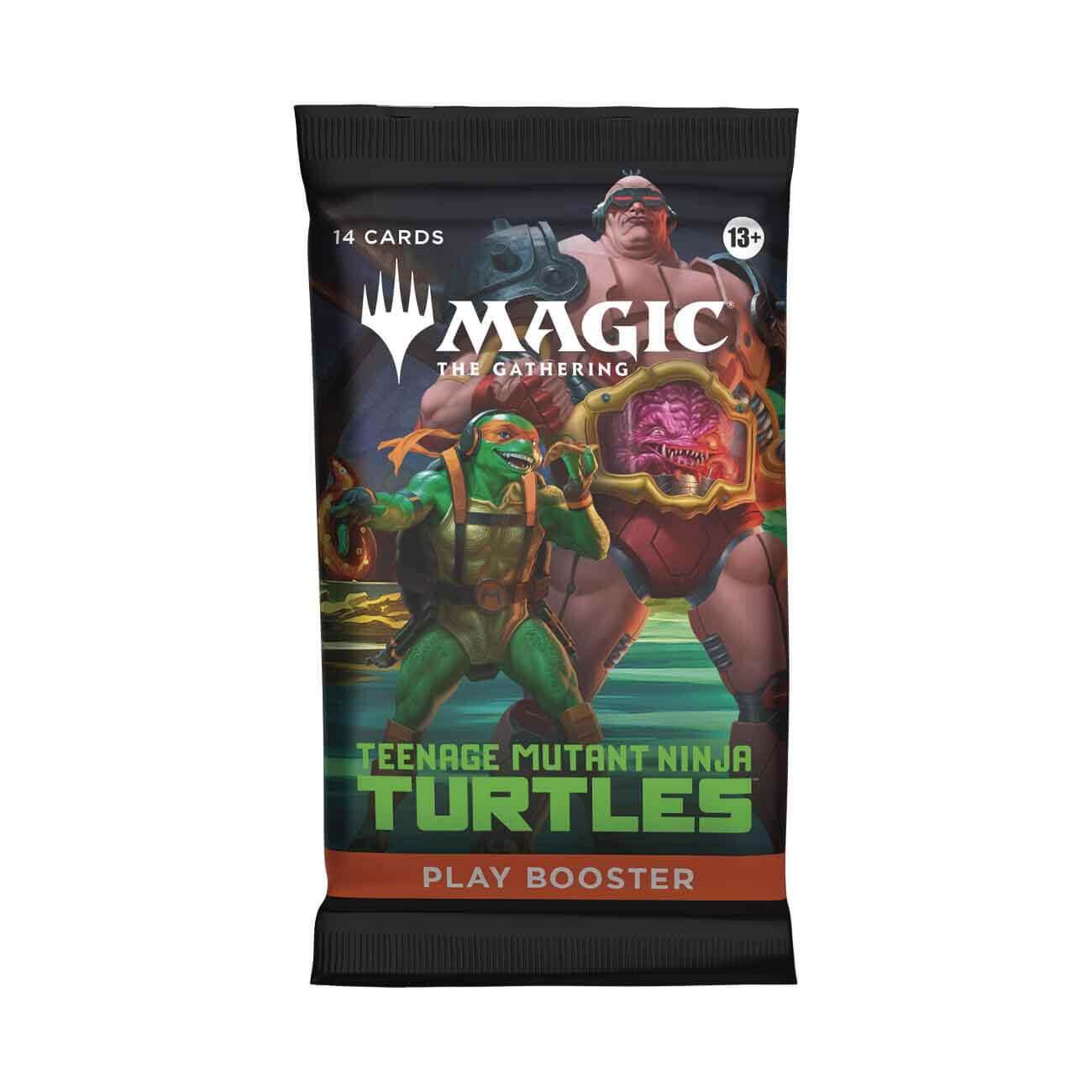 Игровой бустер (play booster pack) издания Teenage Mutant Ninja Turtles на английском языке содержит 14 случайных карт Magic: the Gathering (MTG / МТГ) в том числе: 6-10 обычных (common) карт, 2-5 необычных (uncommon) карт, 1 базовую землю (basic land) с вероятностью 20% фойловую, 1-5 редких и/или мифических карт, минимум 1 блестящую (фойловую) карту (с вероятностью <1% Foil Borderless Mythic Turtle).